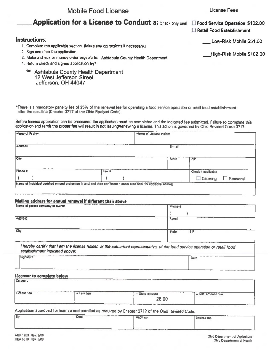 Make bank checks or money orders payable to the Ashtabula County Health Department. A